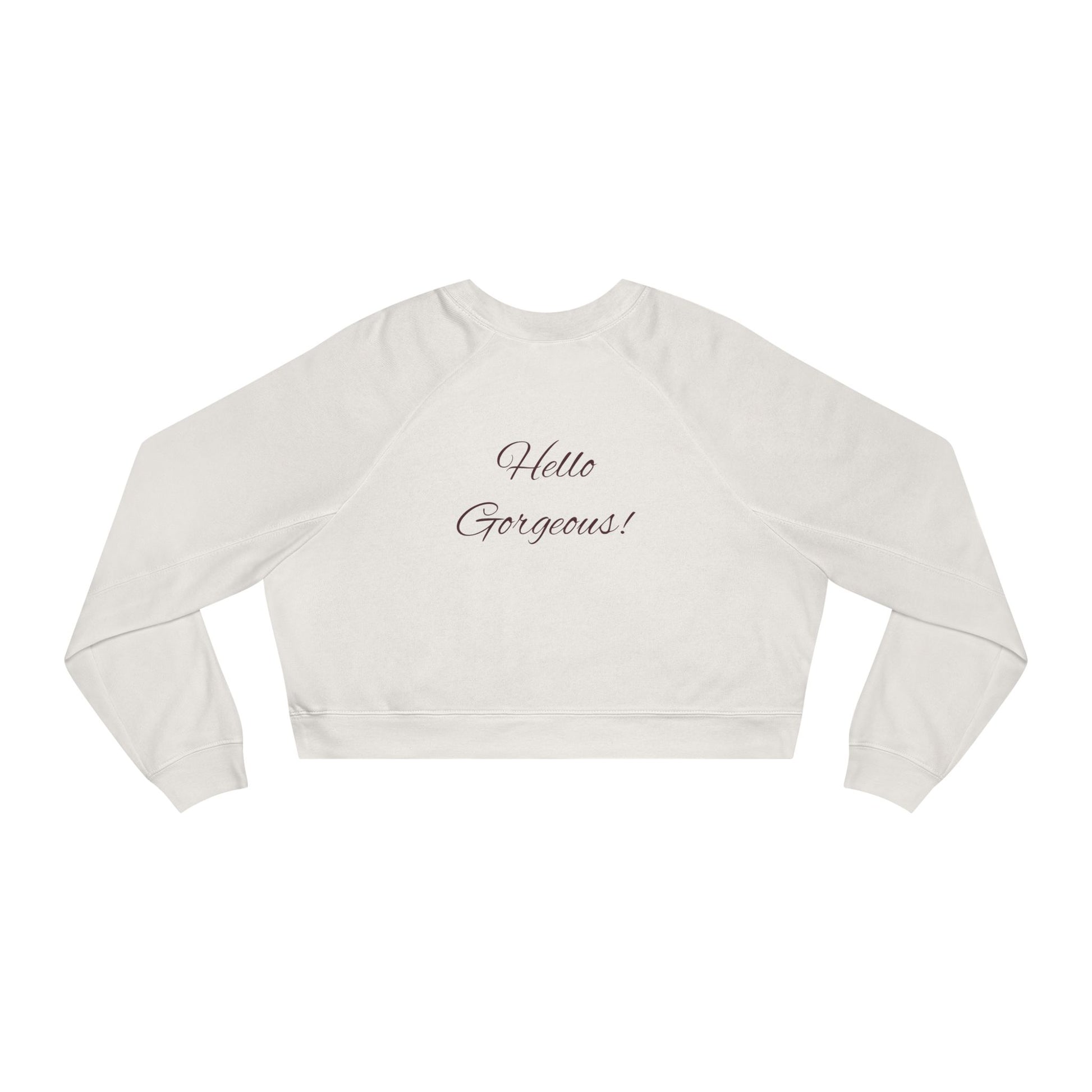 A soft, mid-length cropped fleece pullover designed to feel like a gentle hug on cooler mornings. Lightweight yet cozy, the raglan sleeves and relaxed silhouette let you move without fuss. Find the Bold & Beautiful Boudoir logo on the front and a graceful “Hello Gorgeous!” script across the back for a quietly confident, feminine edge — wearable for slow coffee runs, studio stretches, or layered over a slip dress for an evening stroll. The fabric’s smooth hand and clean seams make it a go-to layering piece that looks intentional and lived-in rather than loud or overdone.