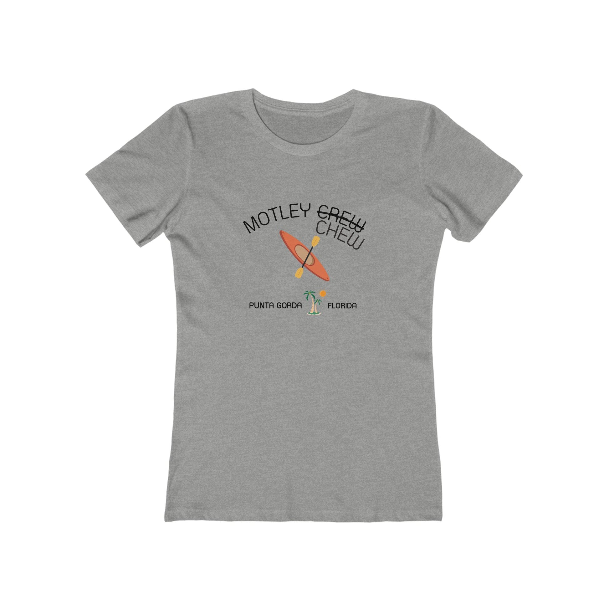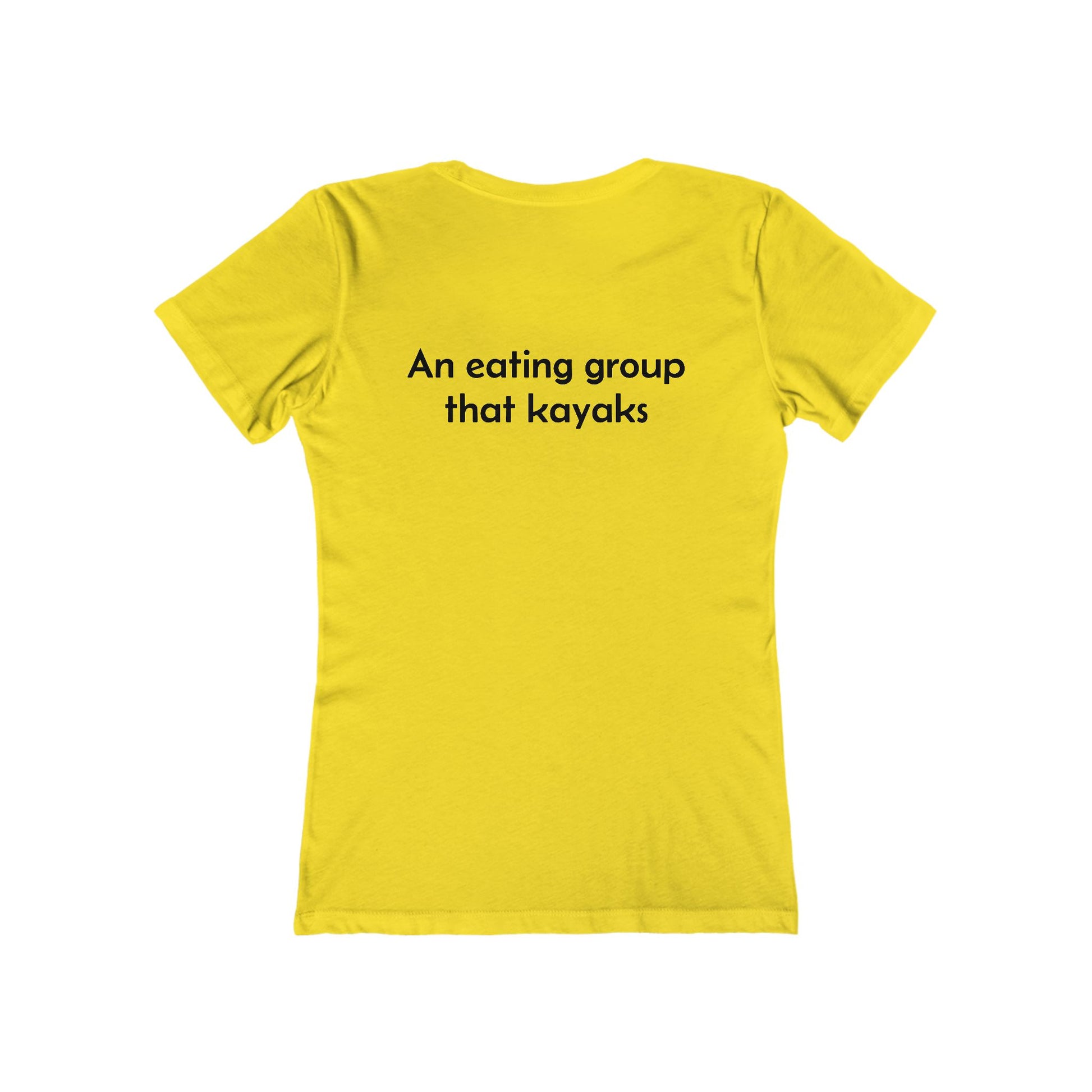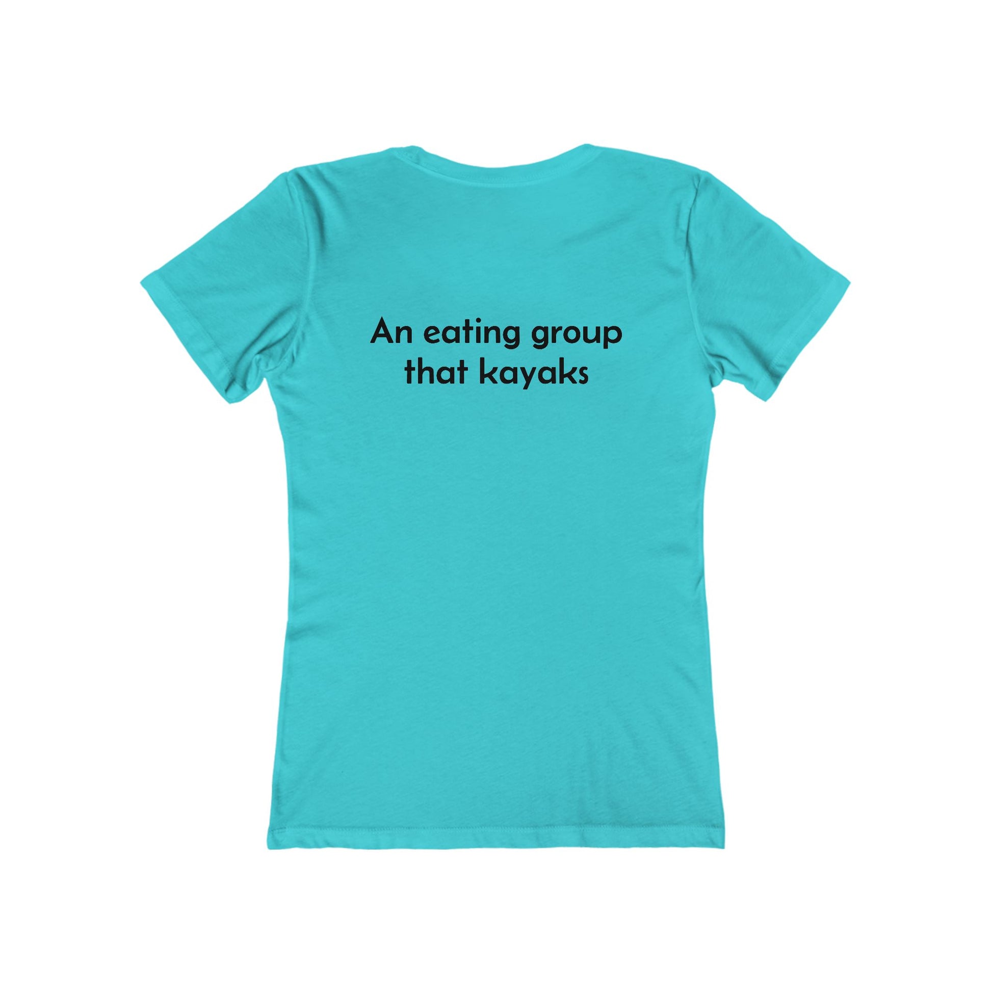 A women's cut custom t-shirt celebrating the Motley Crew kayak club in Punta Gorda, FL who love to eat together!