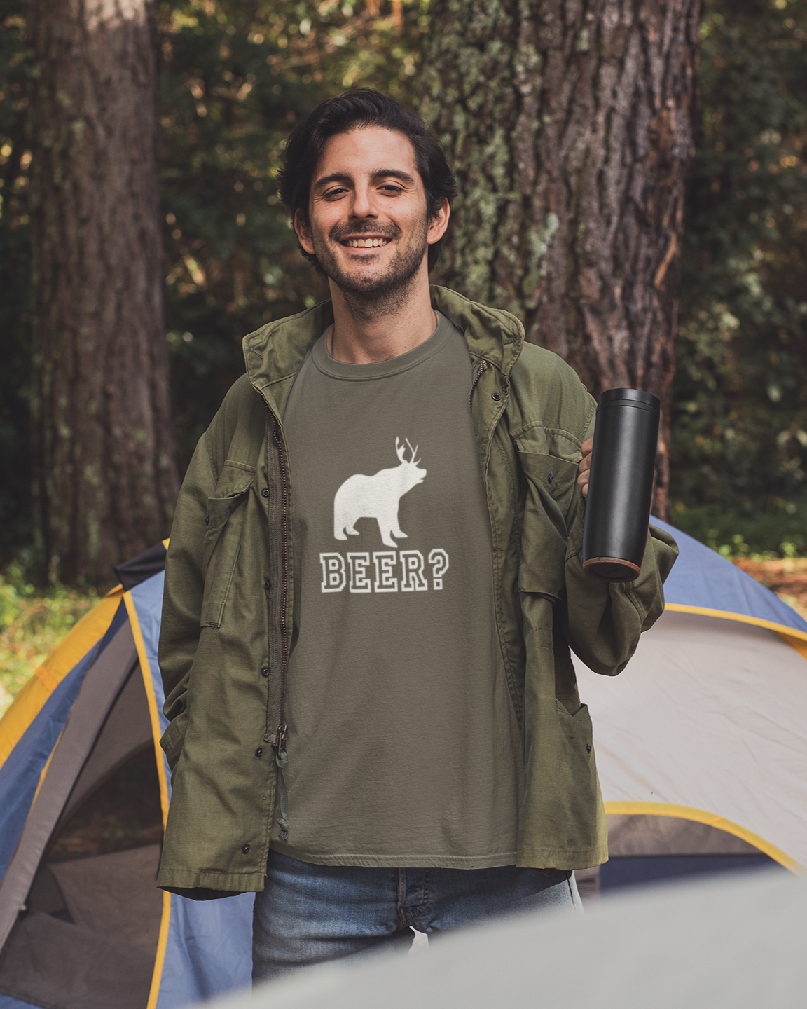 Introducing our playful "Beer" shirt featuring a bear with deer antlers! This unique design combines the love for beer and nature, creating a fun and eye-catching image. Whether you're a beer enthusiast or simply appreciate clever designs, this shirt is a perfect addition to your collection. Show off your love for both brews and wildlife with this one-of-a-kind shirt.