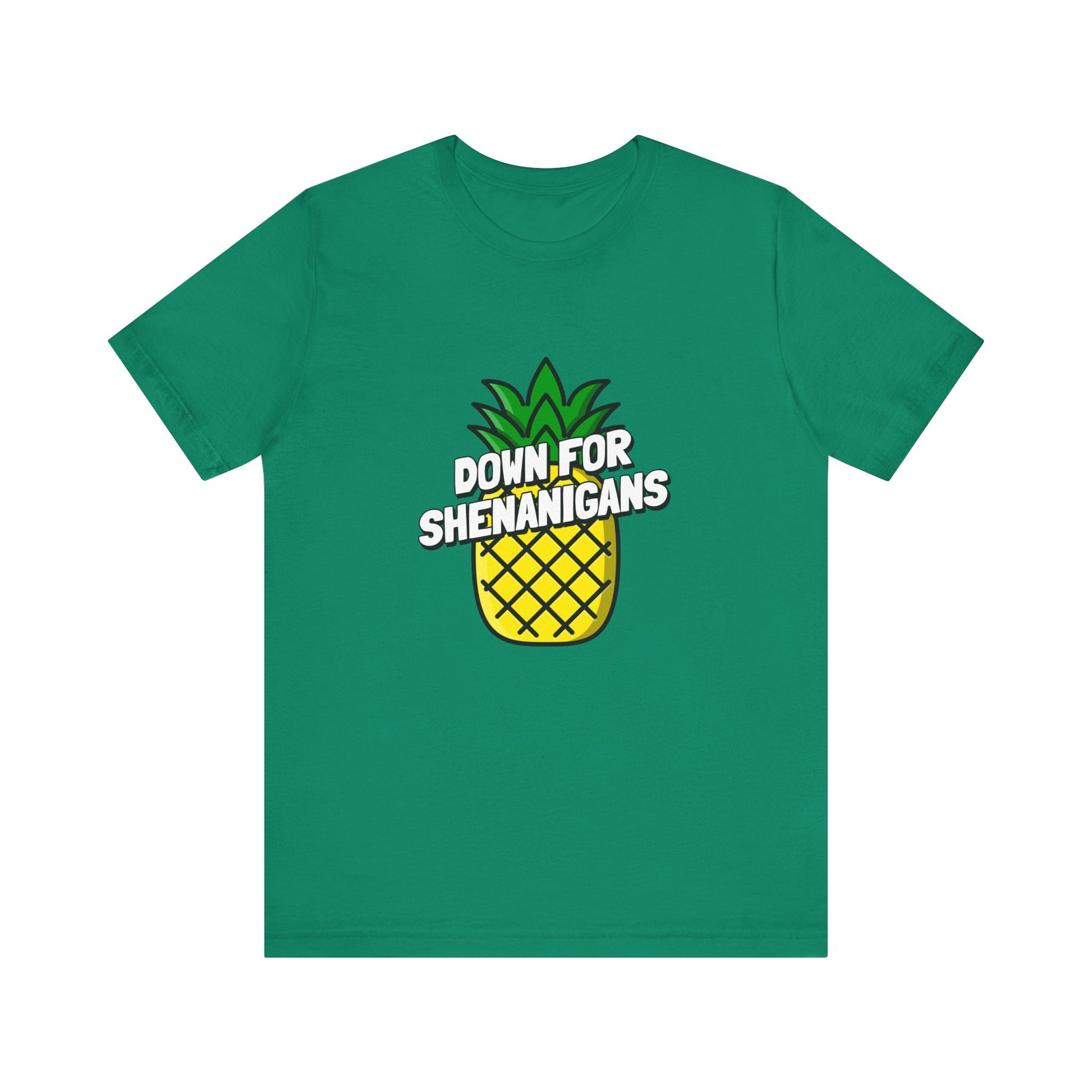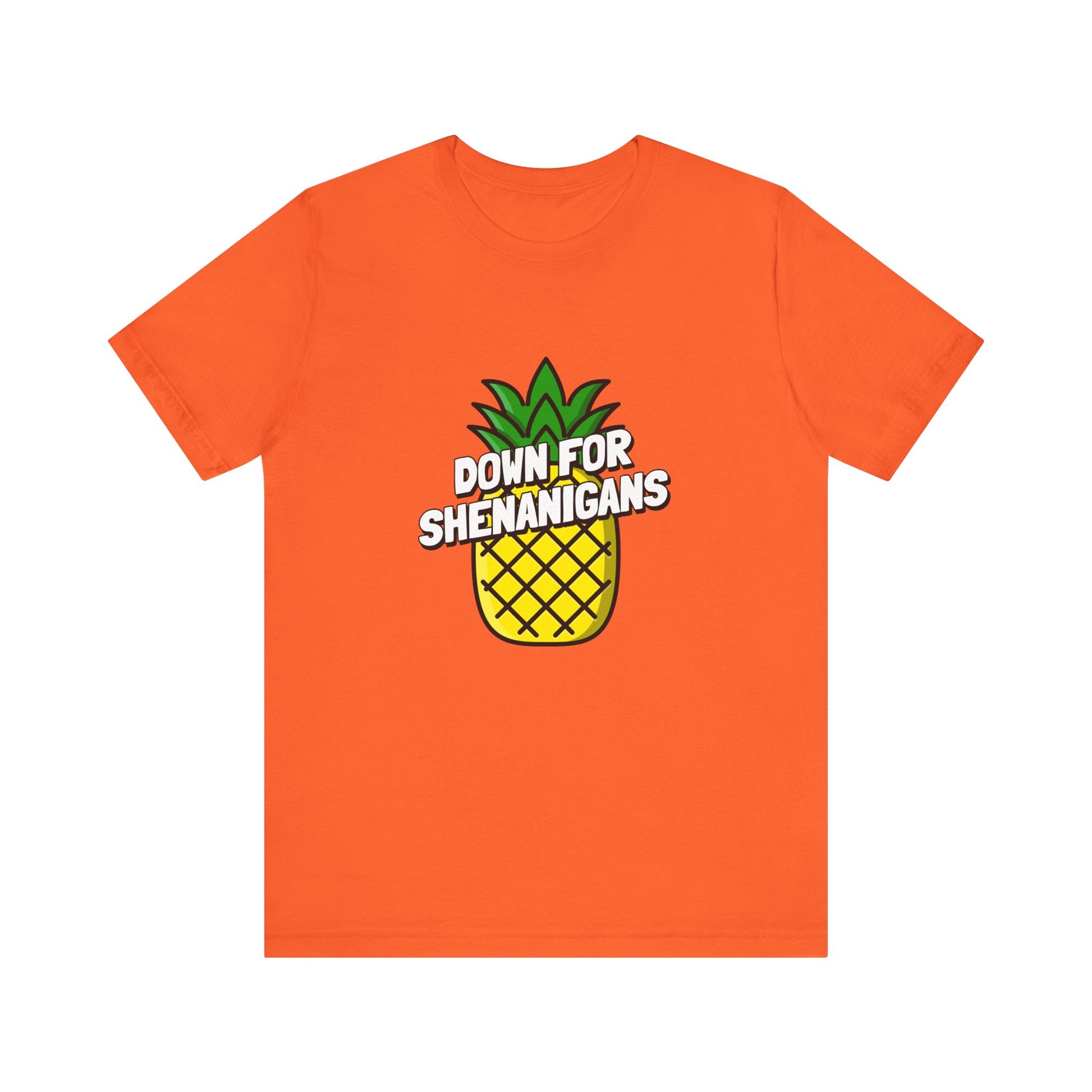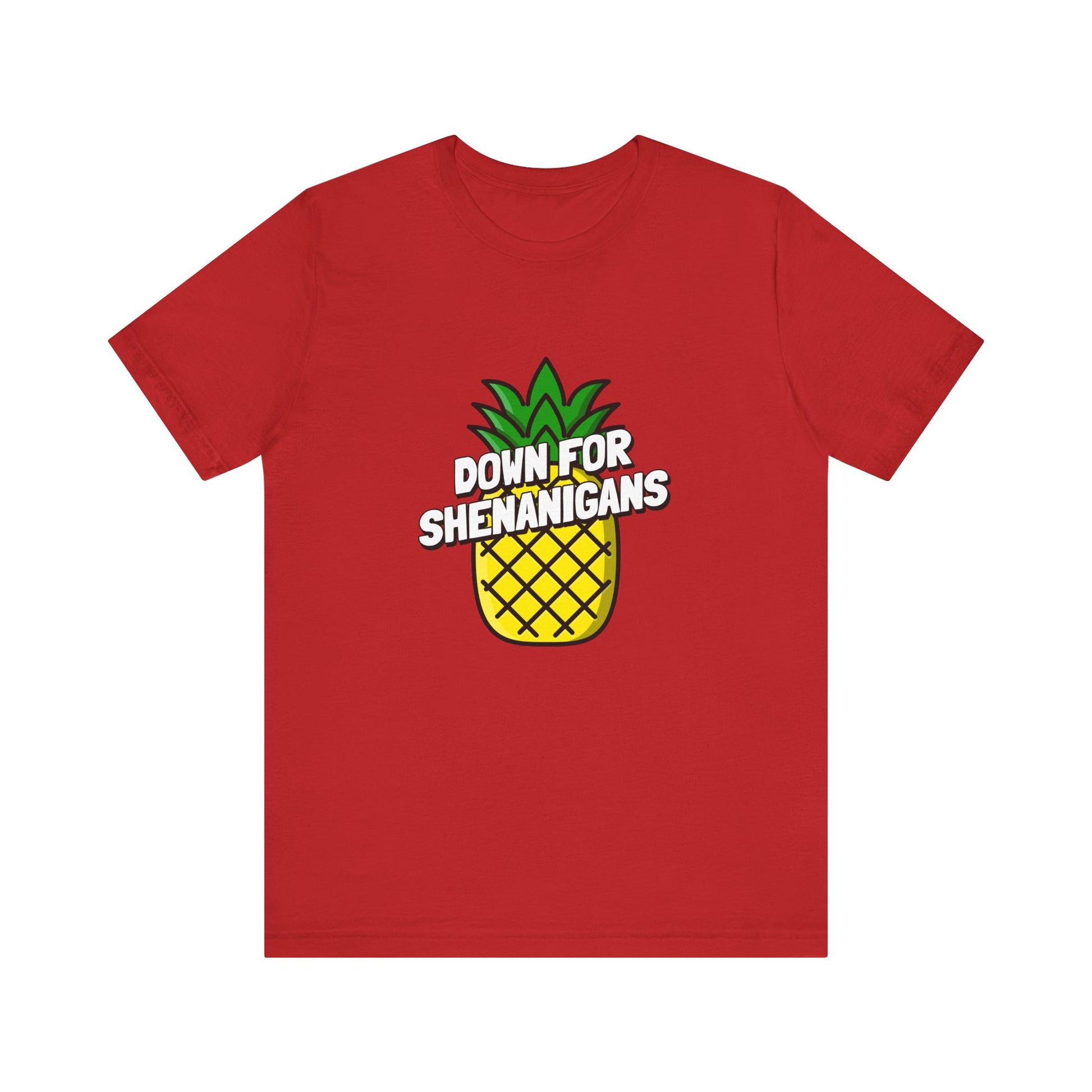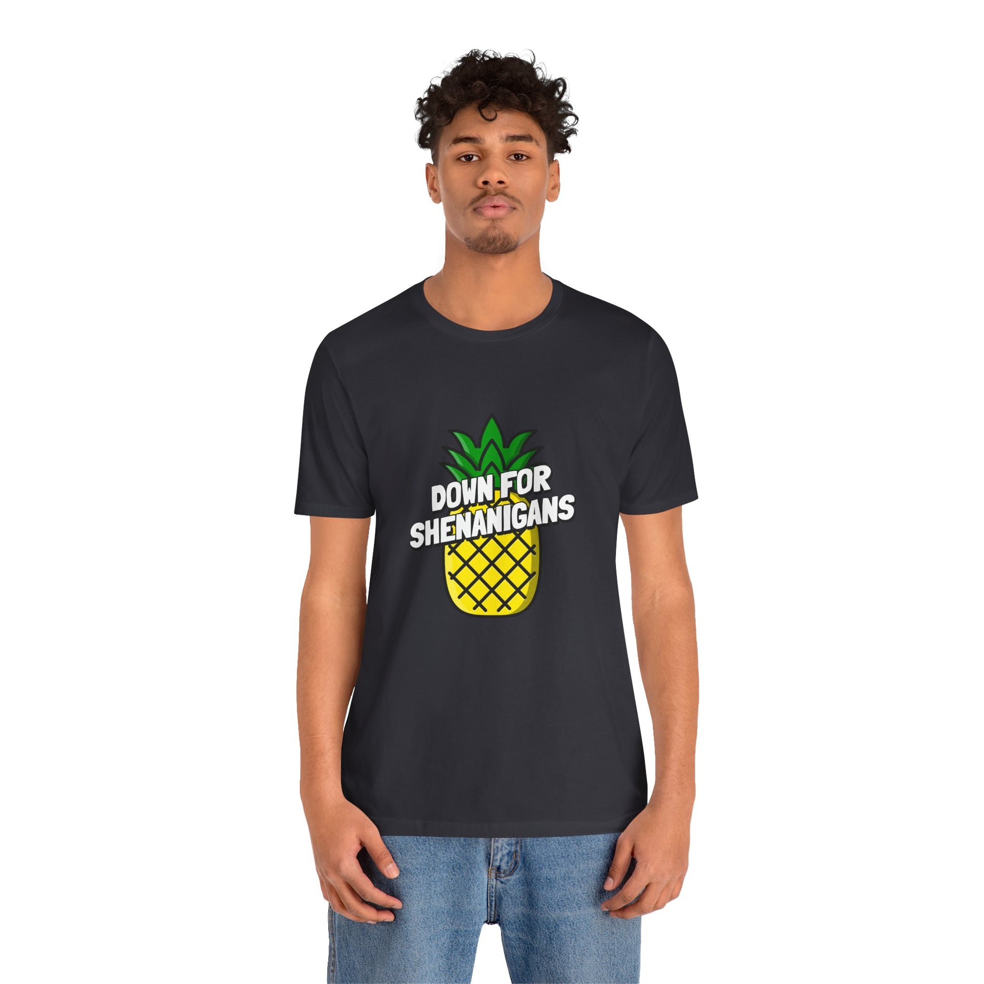 Embrace the spirit of adventure with our 'Down For Shenanigans' lifestyle shirt featuring a playful pineapple. This shirt is your passport to spontaneous moments and carefree fun, perfect for those who never shy away from a good time. Let the world know you're always ready for delightful shenanigans with a twist of tropical charm.
