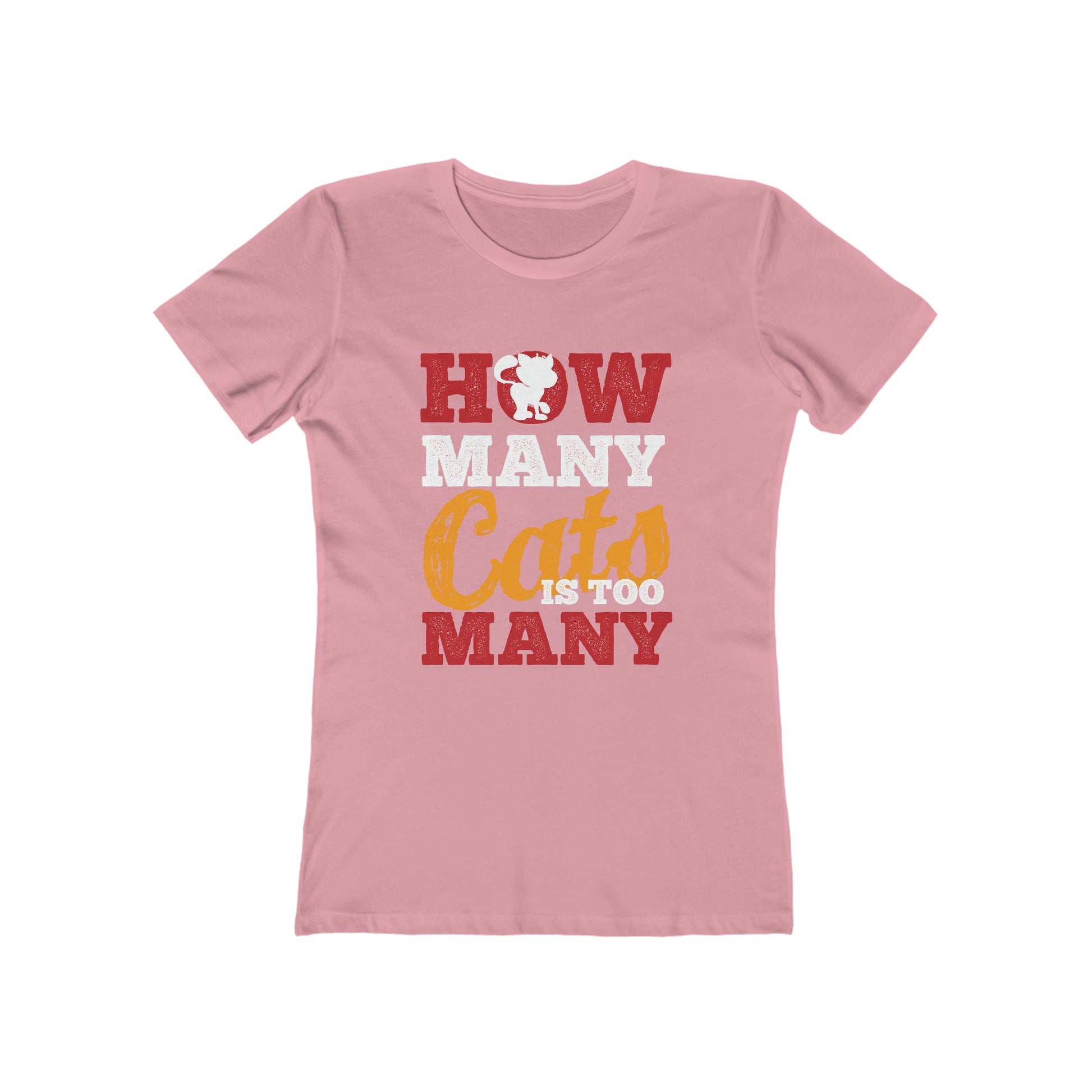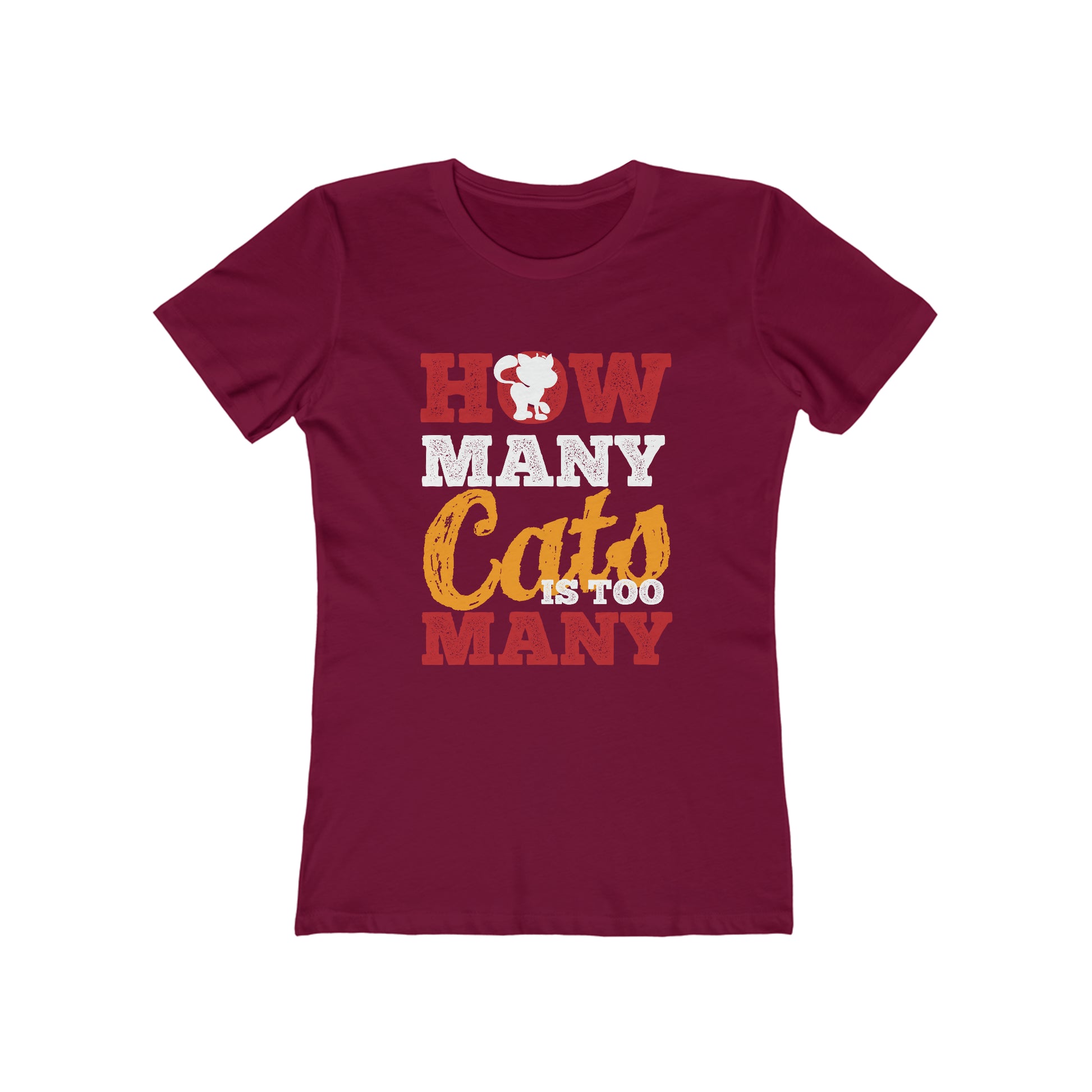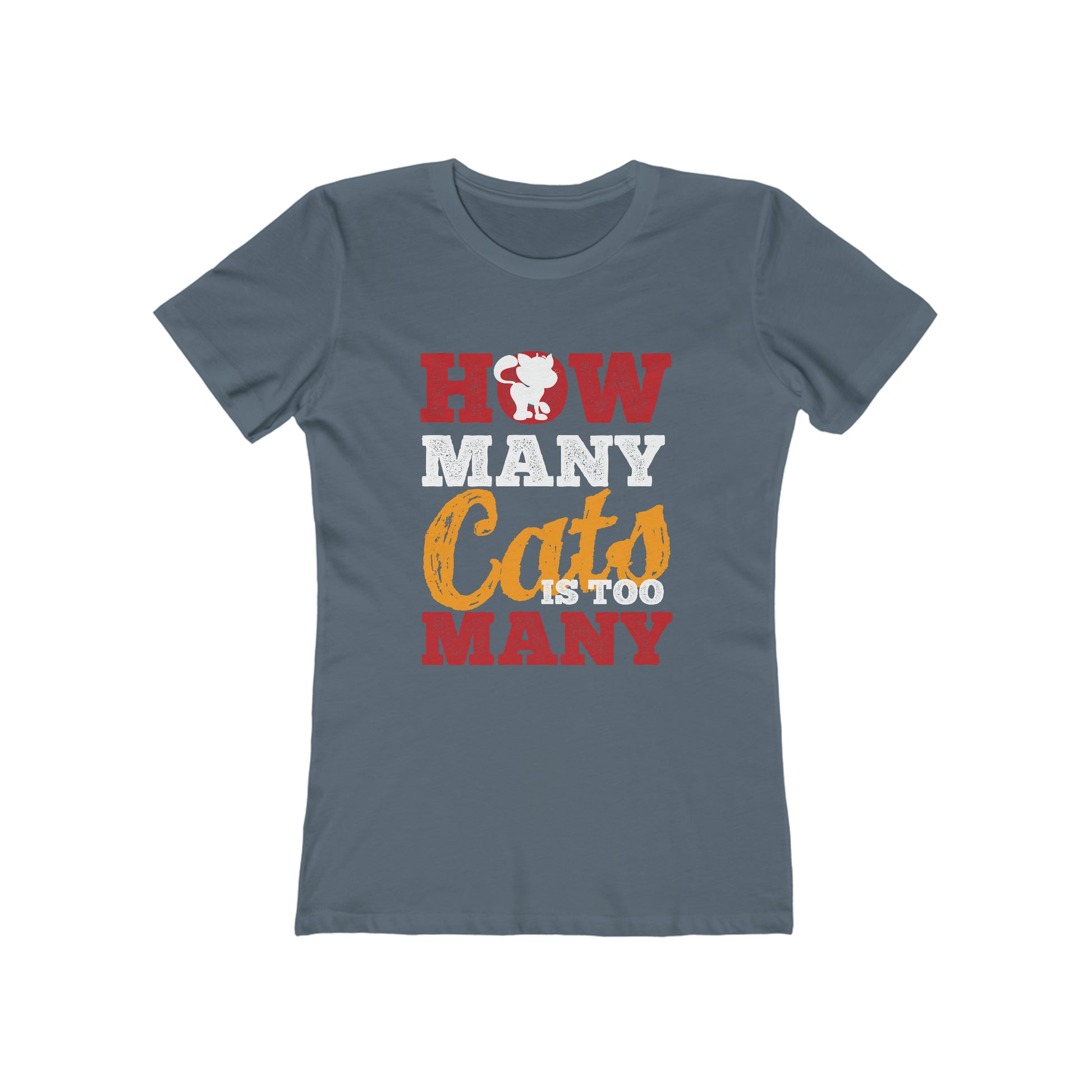 Cat themed t-shirt that asks the age old question "How Many Cats Is Too Many?"