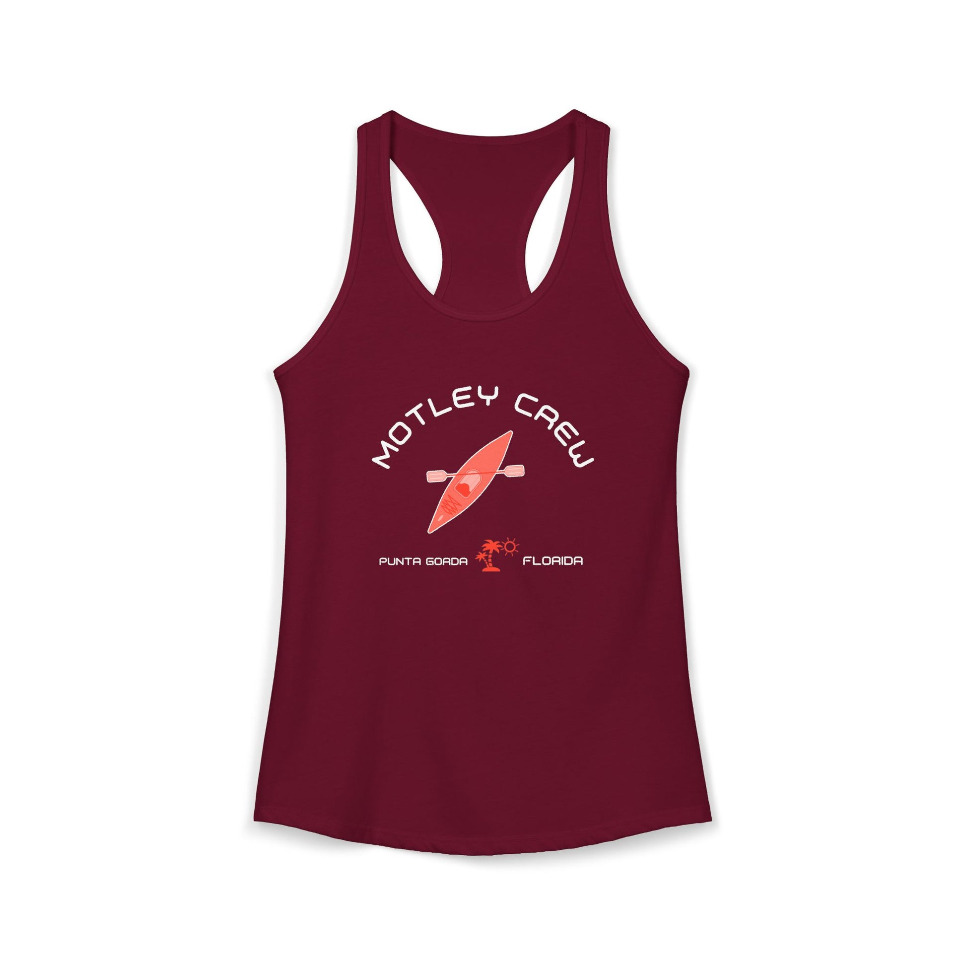 A women's cut tank top for the members of the Motley Crew kayak club in Punta Gorda, FL.