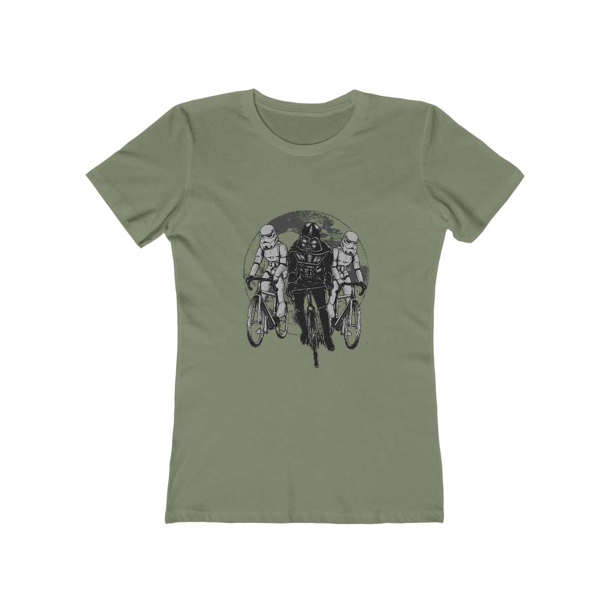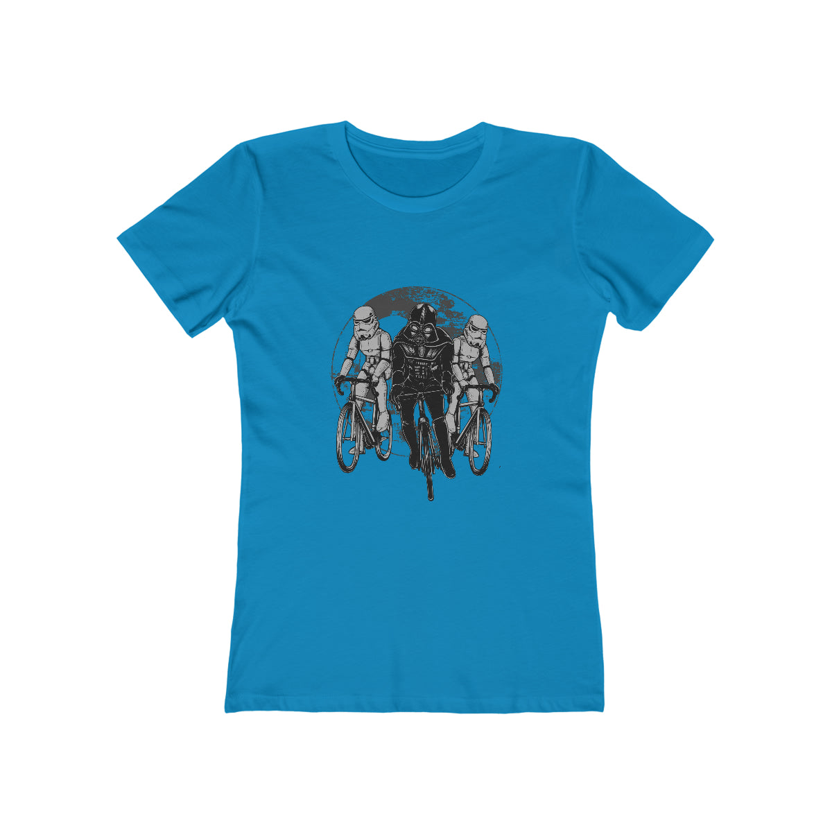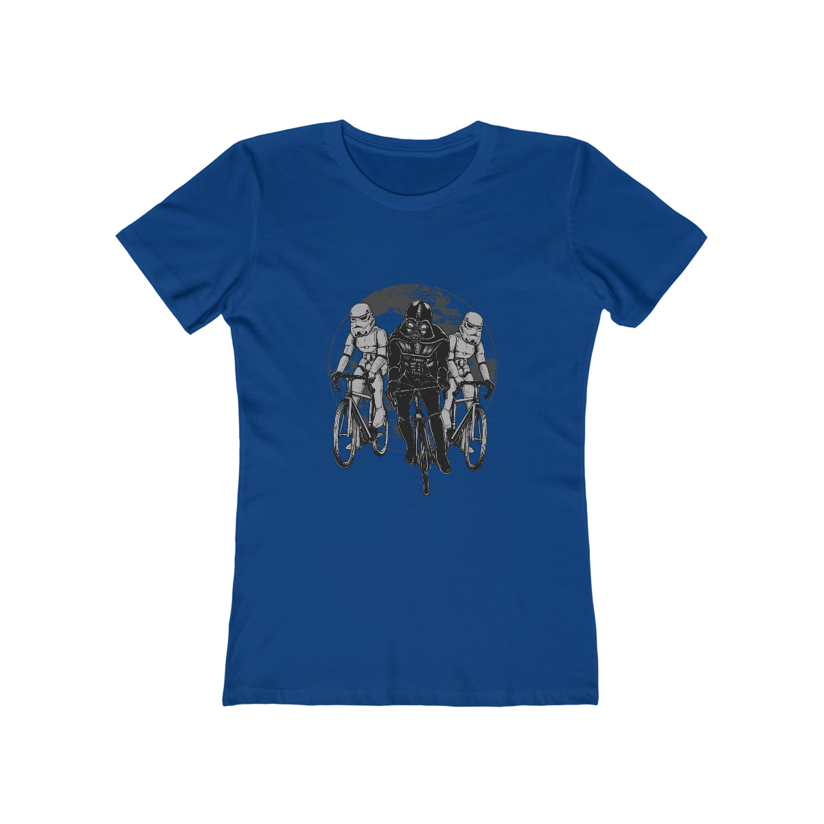 Star Wars themed t-shirt from a long time ago, in a galaxy far, far away with Darth Vader and storm troopers riding bikes.