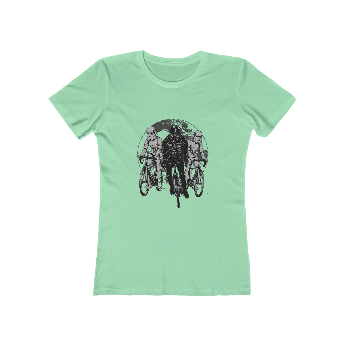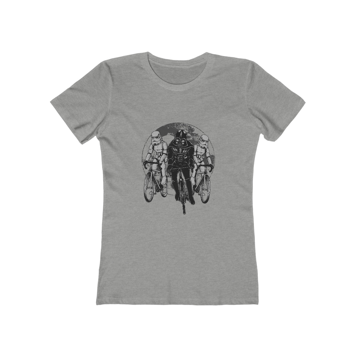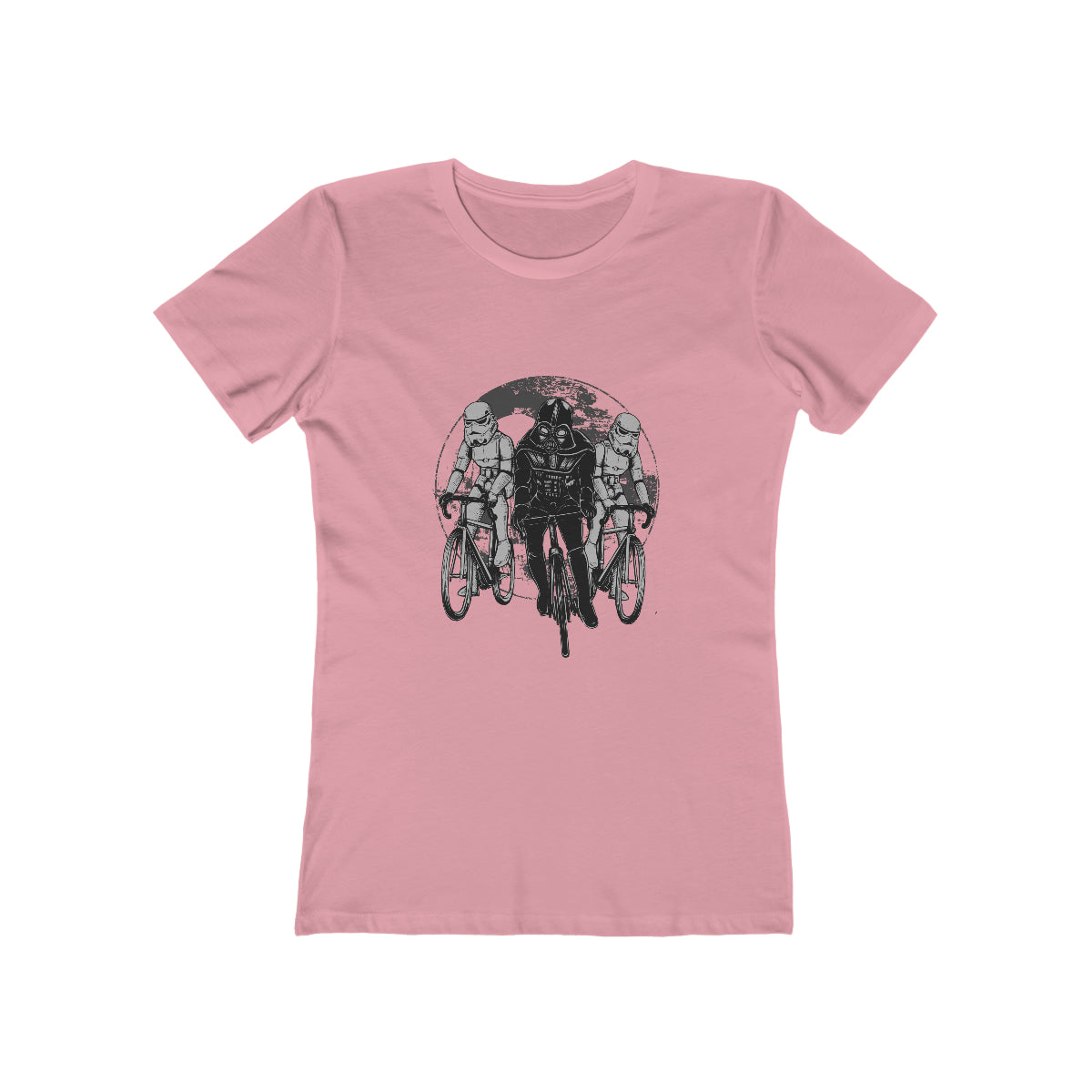 Star Wars themed t-shirt from a long time ago, in a galaxy far, far away with Darth Vader and storm troopers riding bikes.