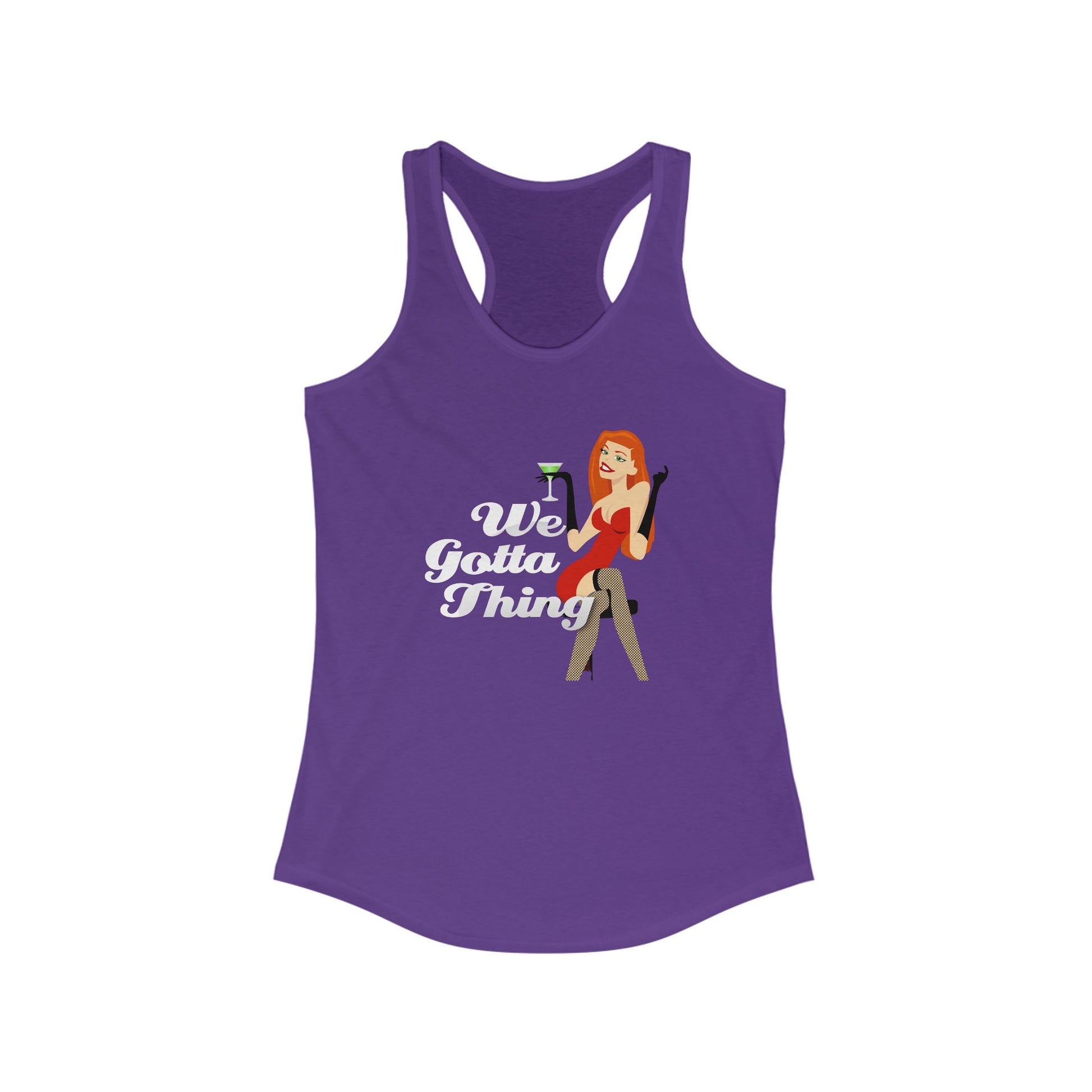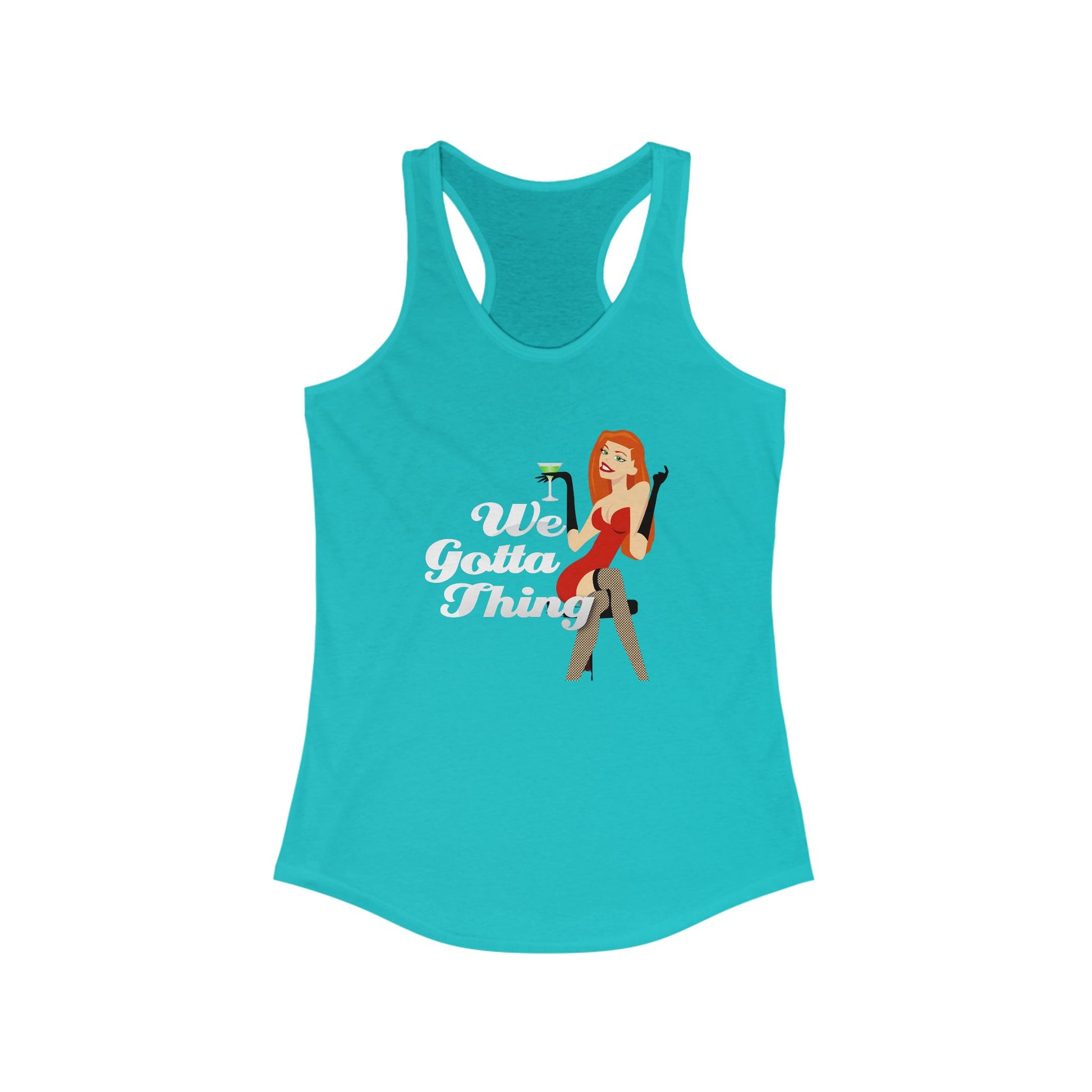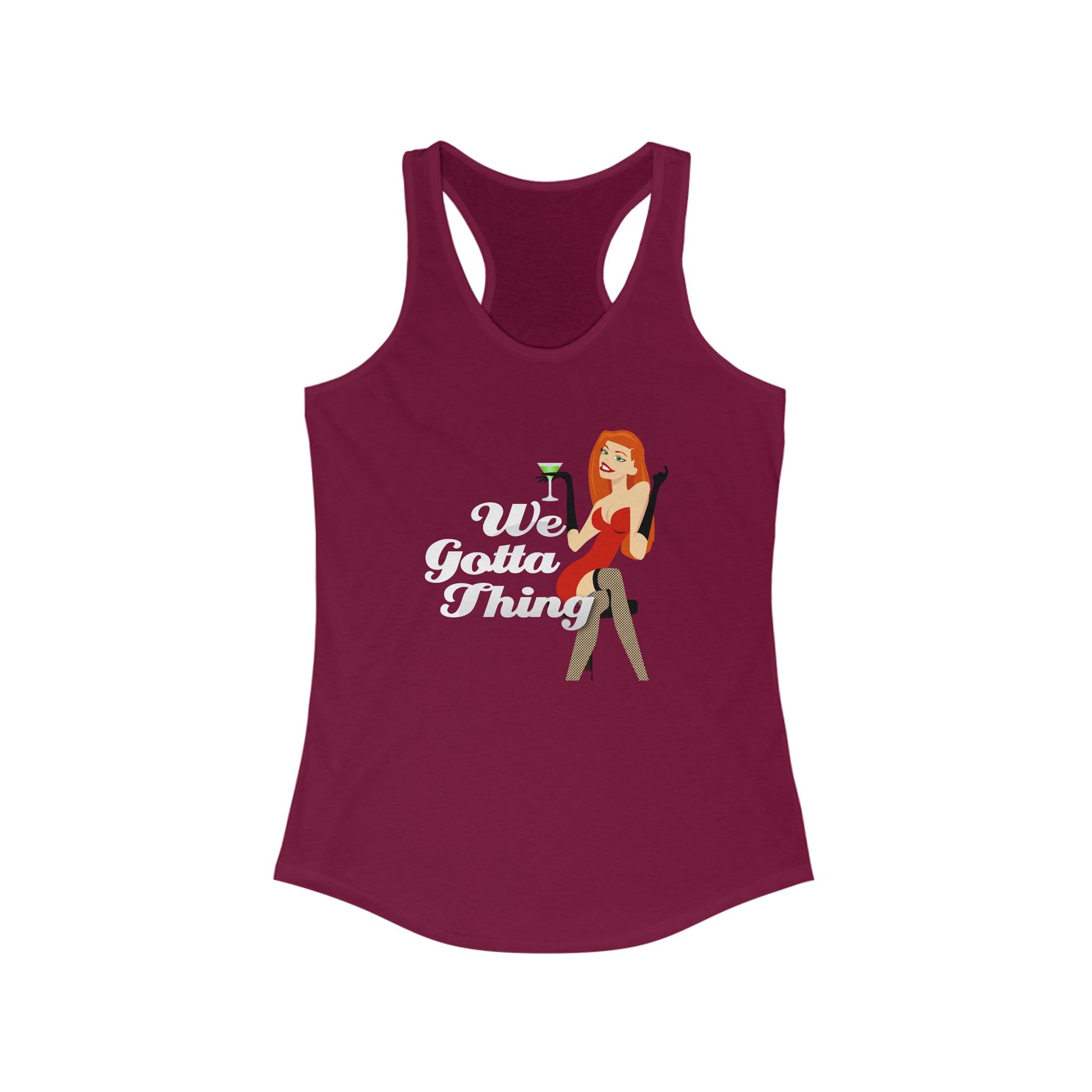 A racerback tank top for the community for the We Gotta Thing podcast.